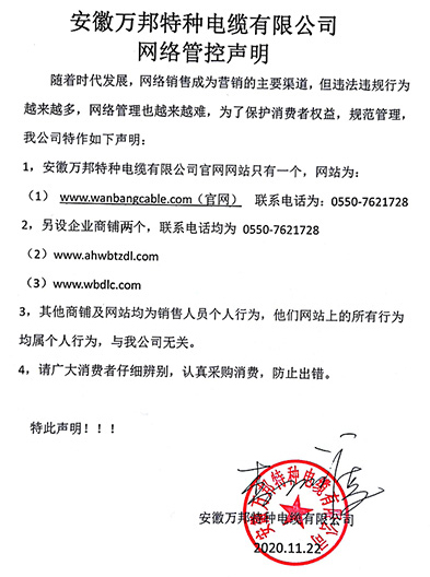 鄭重聲明:安徽萬邦特種電纜有限公司官方網站為:www_wanbangcable_com.mqaffu39s.cn,除此之外無任何子網站或合作網站,其余均為假冒偽劣。電話:0550-7621728 13485756353 地 址:安徽省天長市滁州高新技術產業開發區經四路29號